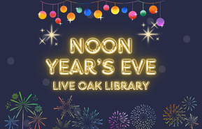 A community celebration at the Live Oak Library to ring in the New Year! Join us for crafts, cookies with cider, and a balloon drop as we count down to welcome the New Year... at Noon!