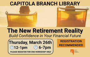 The New Retirement Reality Join us for a free, educational workshop designed for those approaching or already in retirement. The session focuses on improving financial literacy by providing a clear, unbiased overview of common retirement risks and planning considerations, including income planning, taxes, Social Security, healthcare, and estate planning fundamentals. Register for one session only