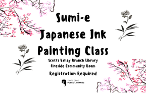 Join Carolyn Fitz at the Scotts Valley Branch Library for this introductory class of Sumi-e or Japanese Ink Painting, a revered art form that uses Sumi- (black ink) and it’s values (ink with water). Art supplies will be provided. Registration is required.