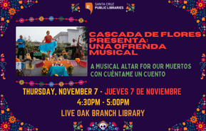 Join Cuéntame un Cuento and Cascada de Flores for an evening of song, dance, and storytelling to celebrate Día de los Muertos.