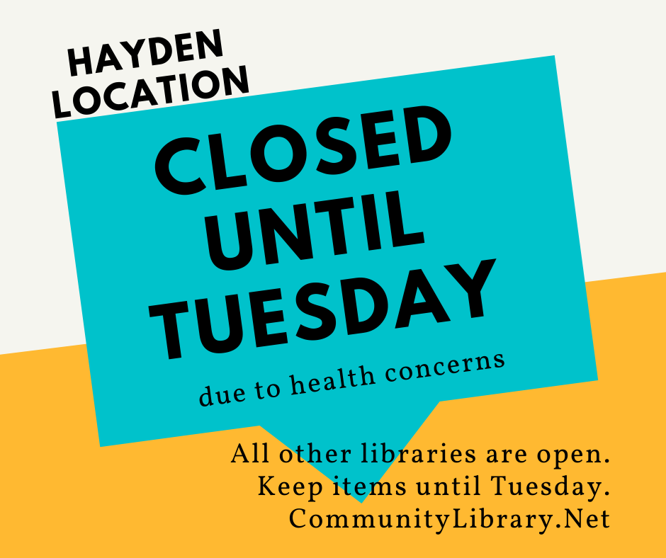 Our Hayden Library is CLOSED until Tuesday due to health concerns.