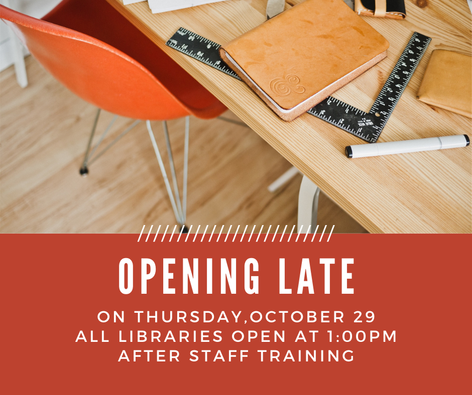 All Community Library Network staff will be participating in a half day of training on Thursday, October, 29th. Libraries will open at 1 pm.