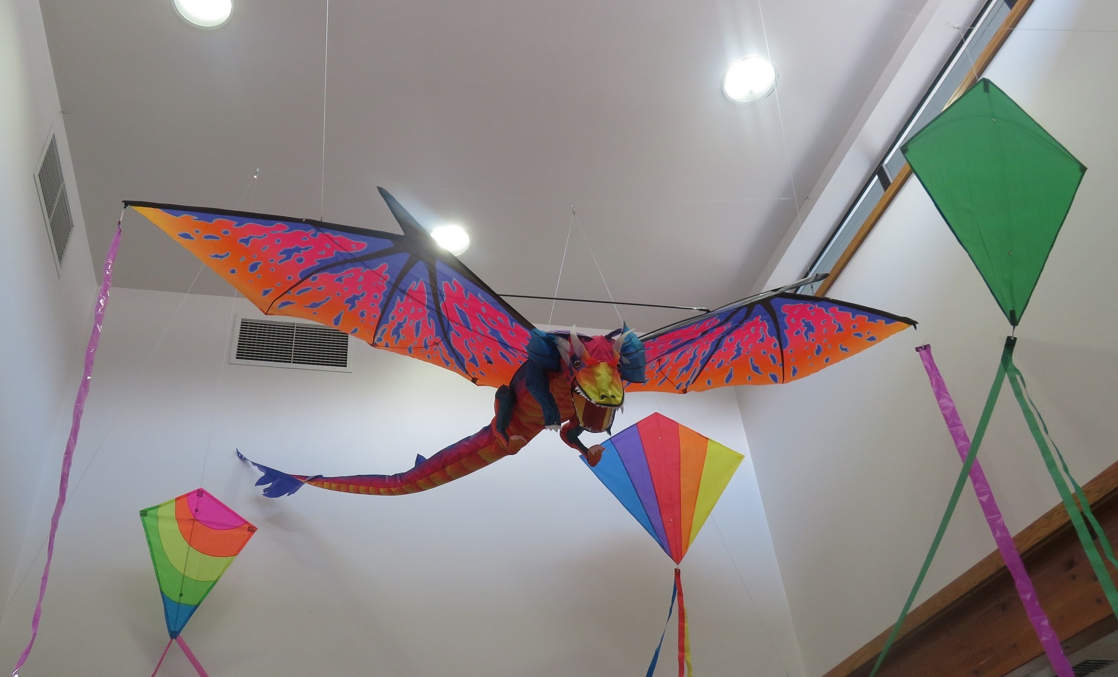 Name Our Dragon!! 🐉 Thanks to the Friends of the Library, we have a new addition to our library team! It's really cool, too. It is a flying dragon hovering in the center ceiling area inside our library! We're having a contest to name him/her, so come in and give us your suggestion. The winner will receive a gift card. P.S. Not all dragons are ferocious.