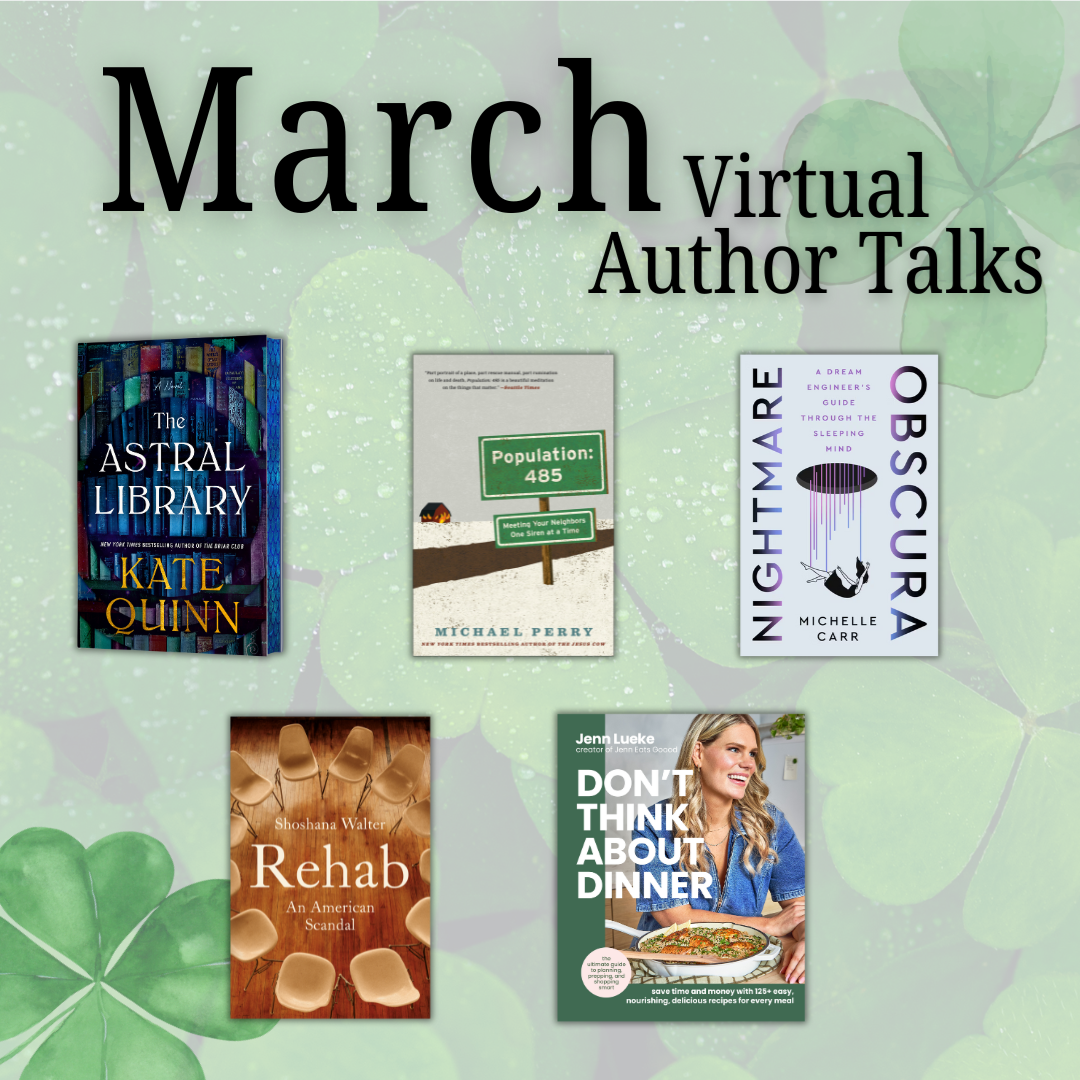 Michael Perry Wednesday, March 4, 2PM Jenn Lueke Michelle Carr Wednesday, March 11, 2PM Kate Quinn Thursday, March 12, 7PM Shoshana Walter & Barbara Kingsolver