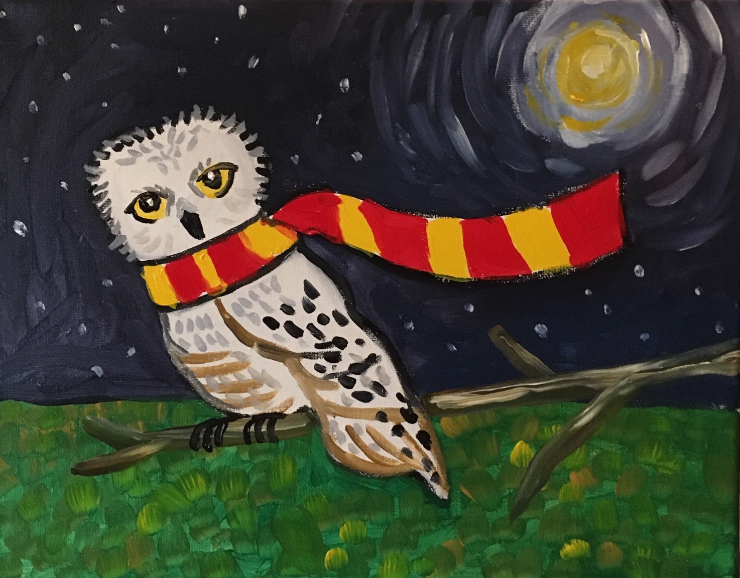 Learn To Paint Hedwig for ages 8-12 on Saturday, November 15, at 1pm. Artist Patti Allen will guide the children step by step through the process of painting Harry Potter's owl on canvas.